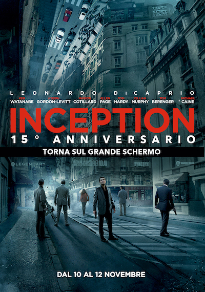 In occasione del quindicesimo anniversario dall'uscita al cinema, torna sul grande schermo per tre giorni settimana dal 10 al 12 novembre l'acclamato film del regista Christopher Nolan che dirige un cast internazionale in un'avventura fantascientifica intorno al globo e nel mondo dei sogni.